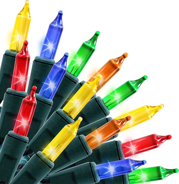 • Incandescent multicolor Christmas lights comes with 100 counts multicolor Christmas Lights, this string light has a length of 19.35 ft (5.9m). And come with Extra Bulbs & Replacement Fuses