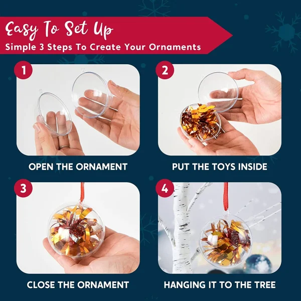 • Perfect for your indoor and outdoor Christmas decorations. Kids and Adults will surely get excited opening these cute fillable balls. Enjoy a hassle-free holiday without worry! Spent the Christmas holiday with your family!