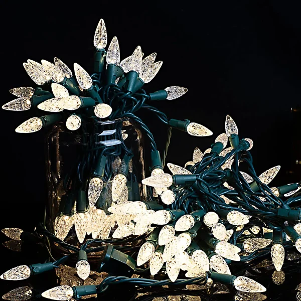 • LED string lights warm white come with 1 pack of 150-count Warm LED light strings. It measures around 50.52 FT with Green wire. whole Lighted Length coverage of 48.72 FT. Also equipped with a C6 bulb type for more efficient, bright, and energy-saving lighting. Our package provides 1 extra C6 bulb count for replacement.
