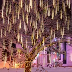 The meteor shower lights are a great way to decorate your home for the holidays. These lights come with 240 LEDs, which are evenly spaced across each tube. The Meteor Shower outdoor Christmas lights are made of high-quality PC material and are waterproof. The Meteor Shower Christmas Lights come in 2 packs of 8 tubes per pack and each tube is 30cm/12inch long. The Meteor Shower Christmas Lights can be used indoors or outdoors. This item is UL Listed and comes with a 1-year warranty.