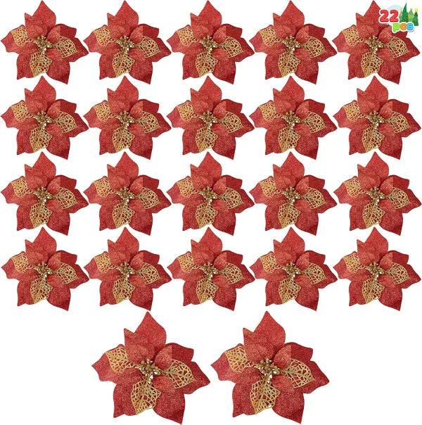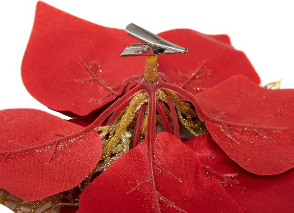 • Artificial poinsettia comes with 22pcs Christmas glittered artificial poinsettia with pre-installed clips. Glitter may shed off but it would not affect the looking!