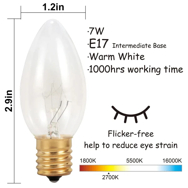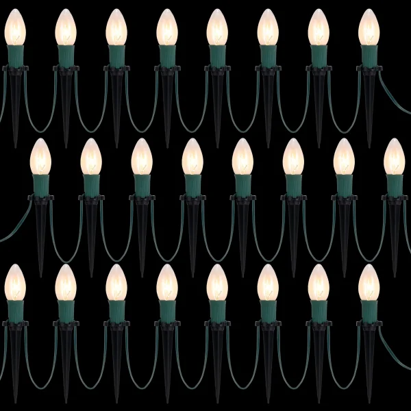 • C9 warm white Christmas LED pathway lights come in 24 C9 White Warm Outdoor String Lights 30.75FT Long.
