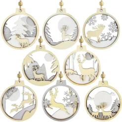 • Wooden reindeer Christmas ornaments include 24 packs of Christmas Wooden Hanging Reindeer Ornaments with 8 different designs. The hanging wooden ornaments are made of natural wood to make them look classy. Perfect for Christmas Tree Indoor/Outdoor decorations.