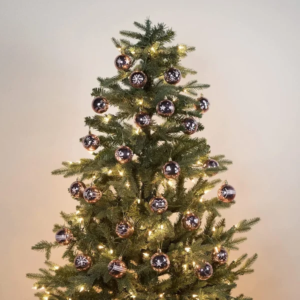 The rose gold Christmas ball ornaments are made of plastic and have a diameter of 2 inches (5 cm). The sizes of the ornament are not too big or small, perfect for hanging on your tree or window sill. These ornaments are perfect for your indoor and outdoor Christmas decorations. Kids and Adults, even your neighbors will enjoy watching these vibrant Christmas Ball Ornaments. It is made of high-quality plastic; these ornaments can be used inside or outside your home to add some Christmas cheer. These vibrant Christmas Ball Ornaments are sure to add a festive touch to any holiday decor!