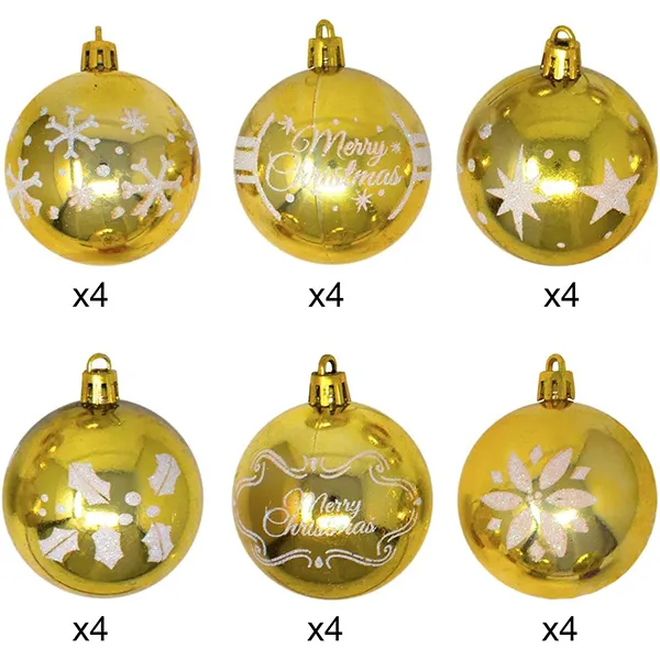 • Gold Christmas ornaments include 24pcs 2.36’’ shiny balls. Each Christmas ball has its own unique print, and there are 6 different designs in total, including snowflakes, merry Christmas, stars, and tree elements. The main colors are baby blue, blue, rose gold, gold, and red. Each color ball ornament is wonderful for your Christmas decorations!