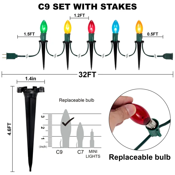 • String lights multicolor comes in 20 C9 White Multicolored Outdoor String Lights 30.75FT long.