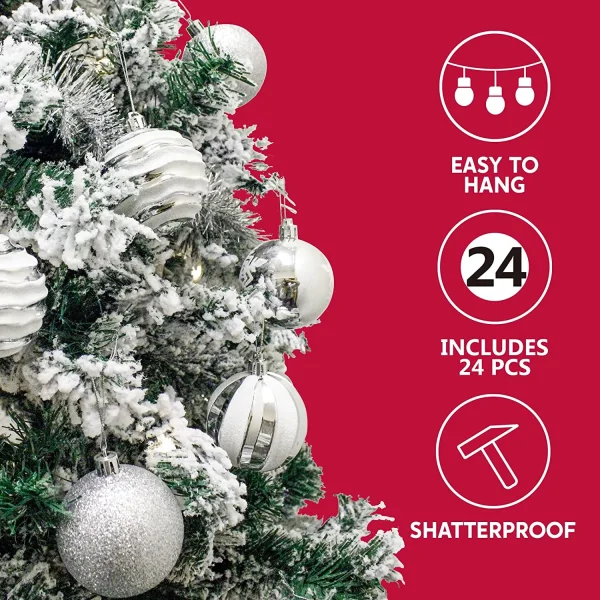• These Christmas Party Decorations feature 24 shatterproof Christmas ball sets measuring 2.36 inches. It is made with shatterproof material for safety, durability, and longevity!
