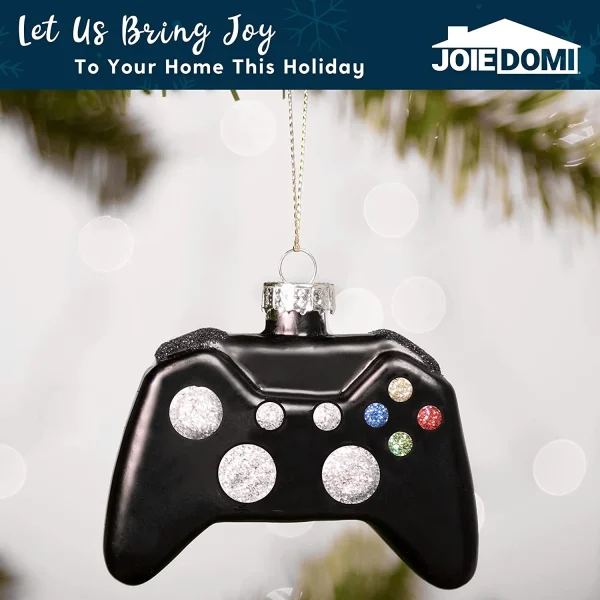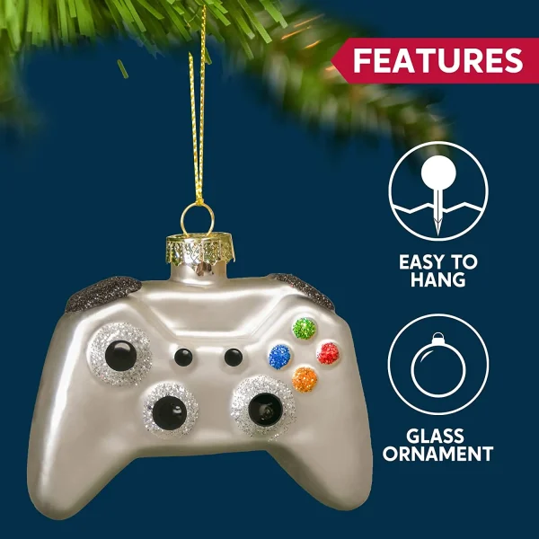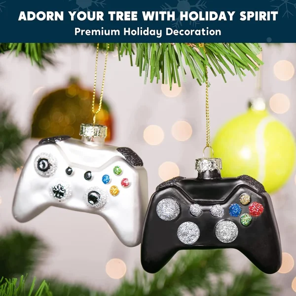 • Video game controller ornament includes 2 game controllers with hand-painted style in black and white, they are glass blown ornaments based on the entity. Each measure 3.15-inch length and 2.55-inch width.