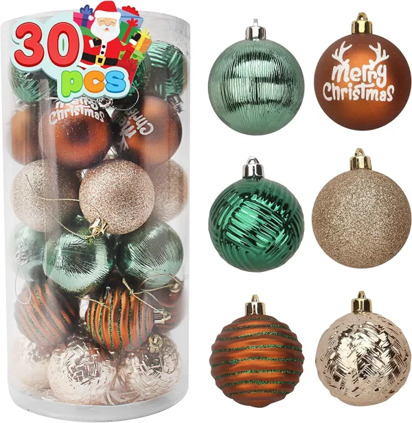 • Our Green And Gold Ornaments Include 5 Golden Matte Balls with Merry Christmas, 5 Green Weave Balls, 5 Golden Glitter Balls, 5 Golden Swirl Balls, 5 Golden Weave Balls, and 5 Green Texture Balls. Each Color Is Bright And Beautiful And Perfect For Christmas Indoor And Outdoor Decorations!
