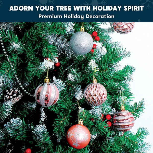 This large Christmas ball ornaments kit will create a stunning Christmas atmosphere for your home or office. This set of 40 pcs shatterproof Christmas balls comes in different styles and designs to fit any style of Christmas decoration. The ball ornaments measure 2.36 inches and are sold in a pack of 6 each. Bring Christmas cheer and holiday joy this season with our festive Christmas balls. Perfect for adding to your Christmas tree or around your house to create a warm, merry feeling.