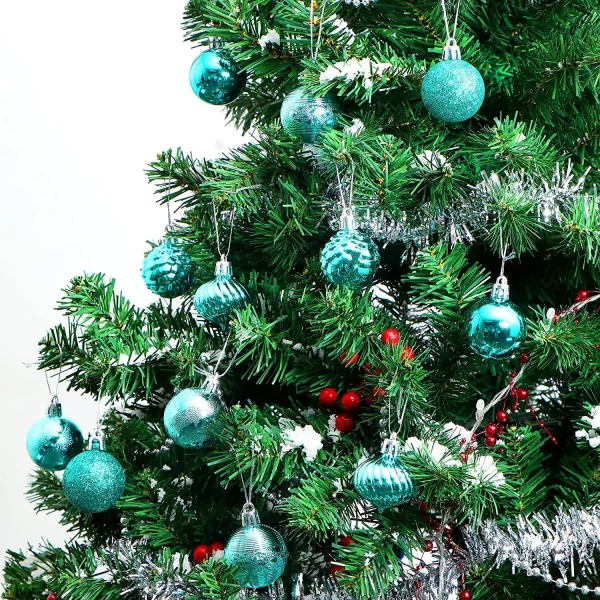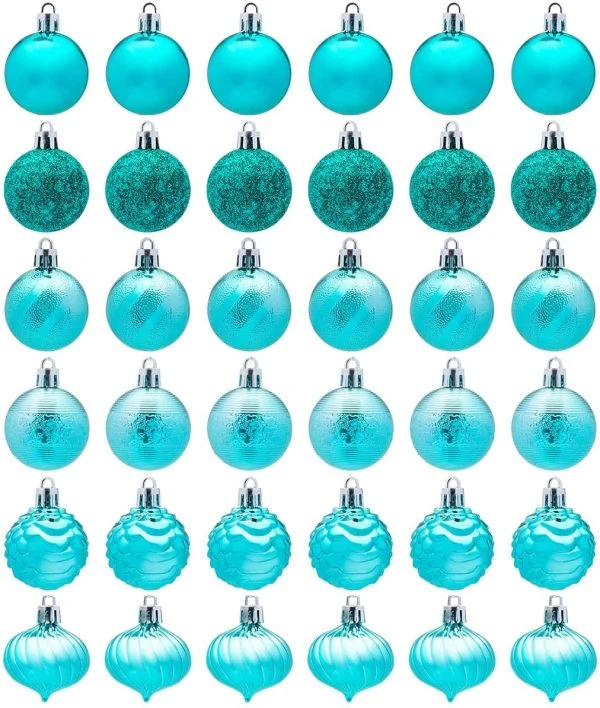 - Super value pack. Our Christmas ornament set includes 6 glitter balls, 6 swirl balls, 6 swirls with bulge balls, 6 stripes balls, 6 shiny balls, 6 pinecone balls. The main colors are baby blue, teal, rose gold, gold, silver, red. The Christmas balls are bright and beautiful and perfect for Christmas decorations!