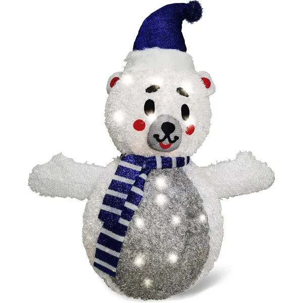 - Our bear yard light includes a 3 feet tall collapsible bear with 100 led warm white lights in clear wire, metal stakes, and zip ties. Made of tinsel material.