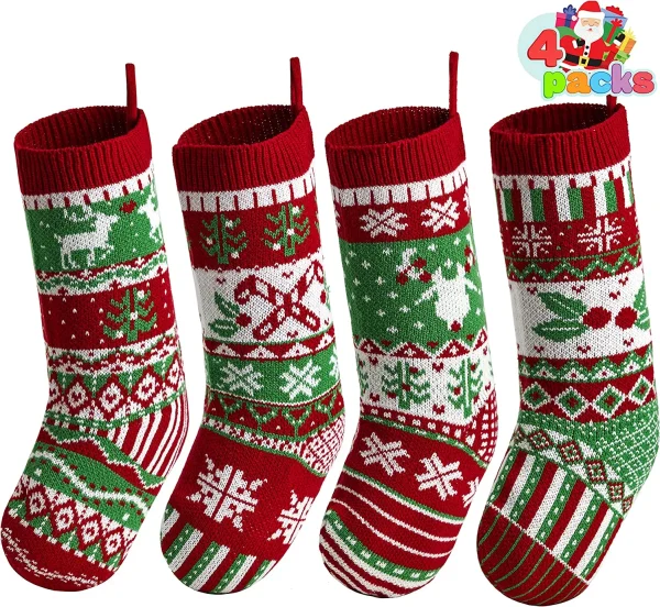 • JOYFY Pack of 4 Large Christmas Stockings with red & green, is a great addition to your holiday seasonal decors and gift for family & friends