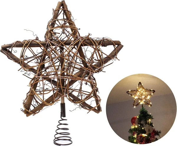 • Rattan star tree topper comes with a rattan star Christmas tree topper with 50 LED and the perfect size, giving you the best mood for Christmas day. Perfect fit for 6ft to 7ft Xmas tree.