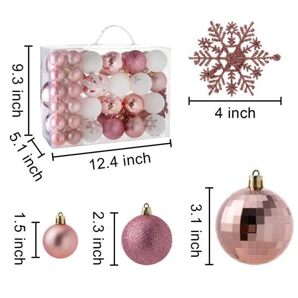 • Our Blue And White Christmas Ornaments set includes 50 pcs Assorted Christmas Ball Ornaments of 10 Blue Matte Balls, 10 White Balls, 7 Blue Shiny Balls, 7 Disco Balls, 4 Glitter Balls, 3 Swirl Balls, 3 Hexagram Snowflake Balls, 3 Christmas Tree Balls, 3 Blue Snowflakes. Perfect for indoor and outdoor decorations for this Christmas Season. Measuring 1.57, 2.36, and 3.15 inches.