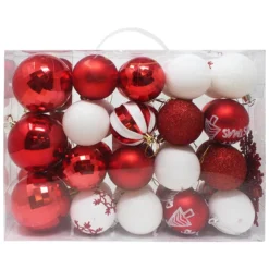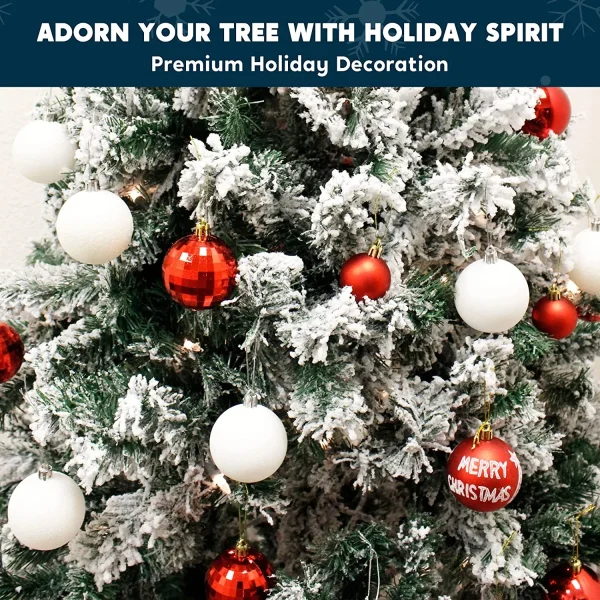 • Christmas ornament includes 50 pcs Assorted Christmas Ball Ornaments of 10 Red Matte Balls, 10 White Balls, 7 Red Shiny Balls, 7 Disco Balls, 4 Glitter Balls, 3 Swirl Balls, 3 Hexagram Snowflake Balls, 3 Christmas Tree Balls, 3 Red Snowflakes. Perfect for indoor and outdoor decorations for this Christmas Season. Measuring 1.57, 2.36, and 3.15 inches.