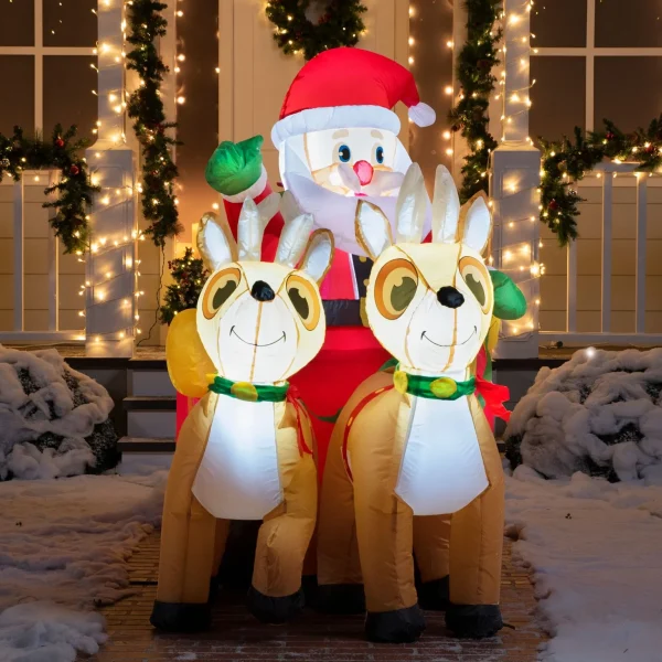 These inflatable Christmas decorations will be the talk of everyone who sees it! It’s sure to be a hit at any party or event! This inflatable is 6 feet tall and has 2 handles so you can sit inside of it or stand on top of it! It includes an extended cord, ground stakes, fastened ropes, built-in sandbags, and a plug with UL certification. The bright built-in LED lights make this inflatable glow after dark. This item can also be used indoors or outdoors. Perfect for pop-up Christmas deer sleigh decor, Christmas outdoor yard garden decorations, Christmas event or party decorations, Holiday blow-ups, and Christmas Eve night decorations. Ideal for winter decoration, Christmas night.
