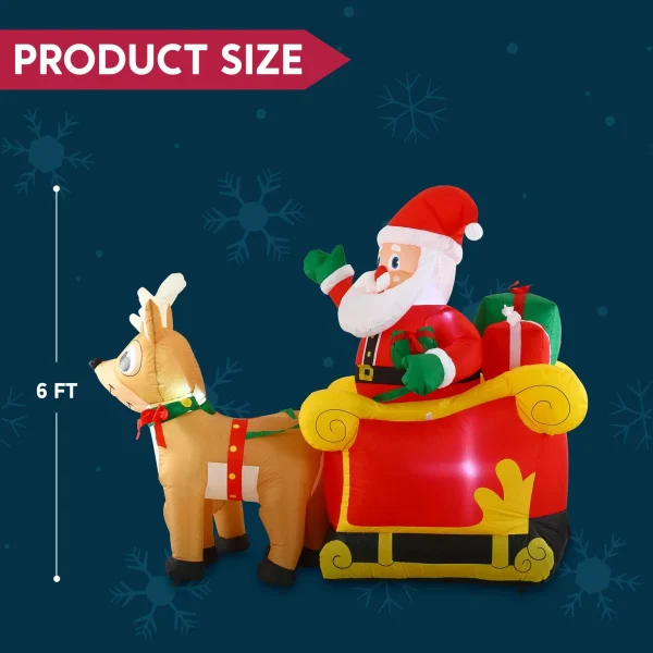 • Christmas inflatable decorations include 6 Feet Tall Christmas Inflatable Decorations and come with an extended cord, ground stakes, fastened ropes, built-in sandbags, and a plug with UL certification.