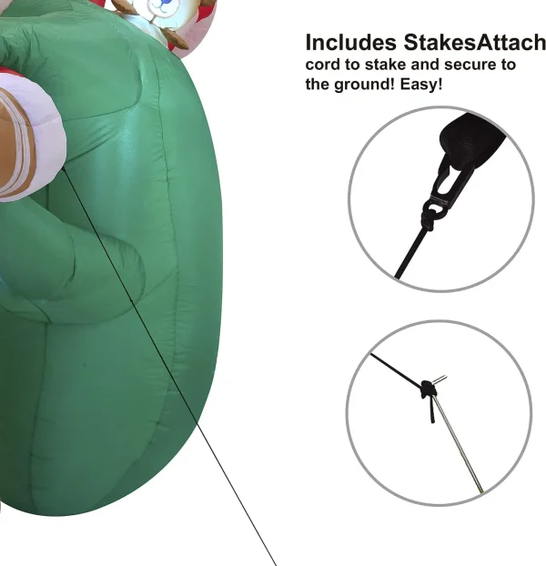 - 6 Feet Tall Santa Helper Gingerbread Man Inflatable comes with an extended cord, ground stakes, fastened ropes, built-in sandbags, and a plug with UL certification.
