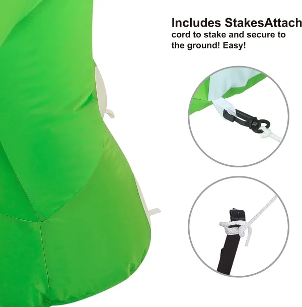 The inflatable brachiosaurus 6Feet Long Brachiosaurus Christmas Inflatable comes with an extended cord, ground stakes, fastened ropes, built-in sandbags, and a plug with UL certification. Bright built-in LED lights. Light up in the evening for the best attraction to neighbors and guests. Premium Quality: Premium quality at a low price! Very easy and safe for kids to help decorate! Plug it in, everything pops up in a minute!