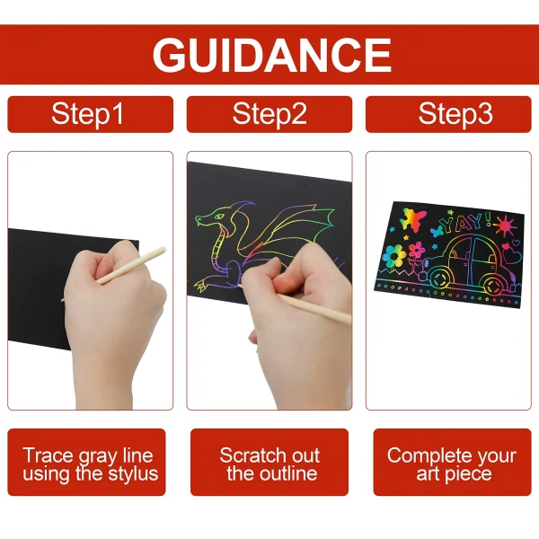 Create your own magic color scratch Christmas ornaments with these magic scratch cards. Guided by the red cords and drawing sticks, you can create unique ornaments by scratching the patterns on the cards and adding red, green, and purple colors to your ornaments. This fun set of ornaments is perfect for home decorating and personalizing, and makes a great party favor for all ages. You can customize them with rainbow colors by scratching off the top protective layer of each card.