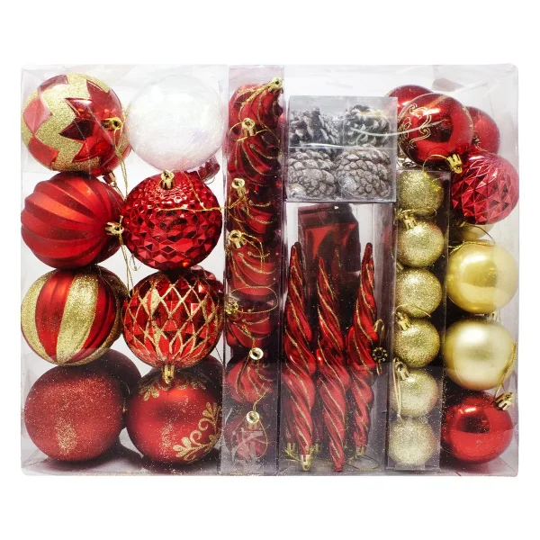 • Our Christmas Ball Ornaments includes 14 pinecones, 4 gift boxes, 12 icicles, 8 glitter balls, 9 shiny balls, 15 matte balls, 4 rhombic balls, 12 wavy balls, 2 striped balls, 5 shiny balls with merry Christmas pattern, 2 transparent balls with foil. Measuring 1.57’’, 2.36’’, 3.15 inches. Each Color Is Bright And Beautiful And Perfect For Christmas Indoor And Outdoor Decorations!