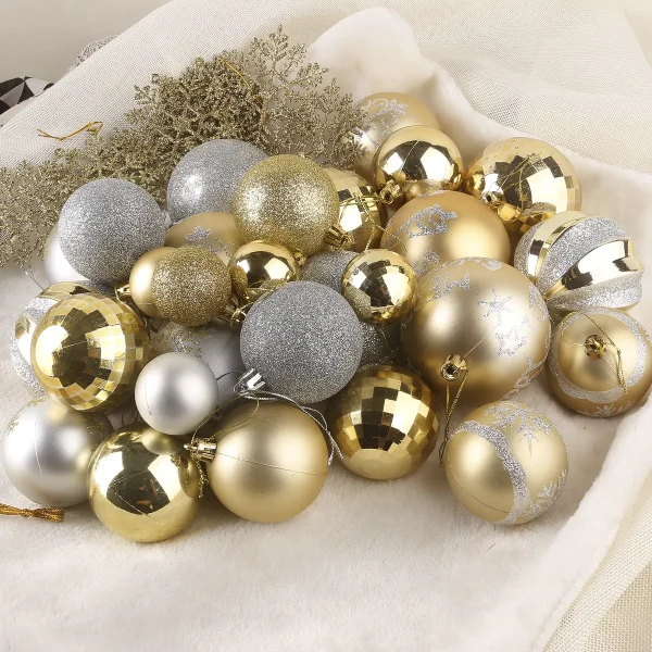 This set of gold and silver shatterproof tree ball Christmas ornaments will add dazzling silver and shiny gold to your home in festive shades, adding an elegant and luxurious touch to your home on Christmas day. Christmas balls are available in four different finishes: shiny, matt, mottled, and glitter. These Christmas tree ornaments are made of shatterproof materials and are unbreakable, making decorating safe and enjoyable for the entire family. Perfect for your Christmas tree, table centerpieces, and tree branches. Ideal for Christmas, parties, engagements, family gatherings, weddings, and other special occasions.