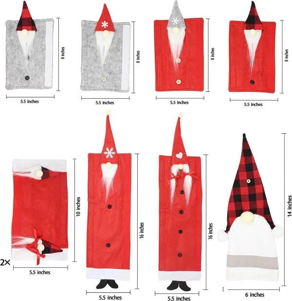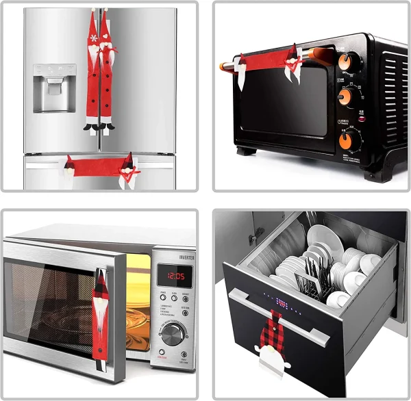 These are the best refrigerator handle covers you can find in the market! JOYFY Christmas refrigerator door handle covers for kitchen appliances. This includes 2 long vertical fabric gnome couple handle covers (16 x 5.5 inches), 4 short vertical fabric gnome handle covers (8 x 5.5 inches), 2 horizontal fabric handle covers with 2 gnomes on each (5.5 x 10 inches), and 1 gnome kitchen towel (14 x 6 inches).