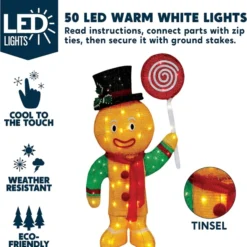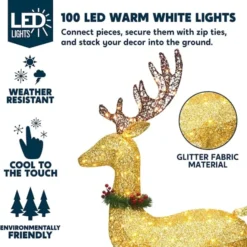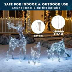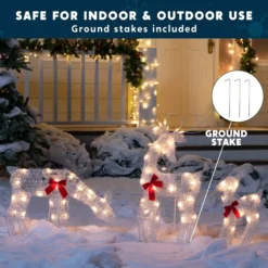 3Pcs Christmas Yard Lights 5ft Buck, 4ft Doe, 3ft Fawn With Wreath