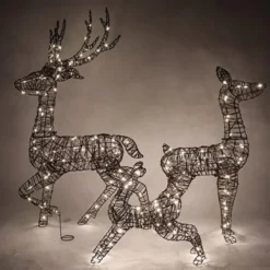 3Pcs Rattan Christmas Reindeer Buck, Doe, And Fawn Yard Lights