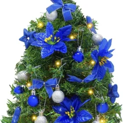 DIY Blue Small Tabletop Christmas Tree With LED Lights 24 In