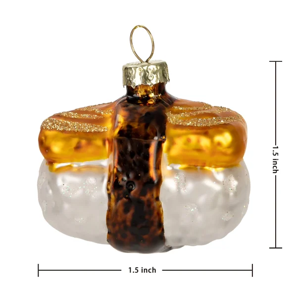 - Our glass Christmas tree ornaments set includes one tamagoyaki sushi and a one-piece sushi roll with a hand-painted style. They are glass blown ornaments based on the entity. Sushi roll diameter is 1.75 inch and tamagoyaki sushi dimension is 1.5-inch x 1.5 inch.