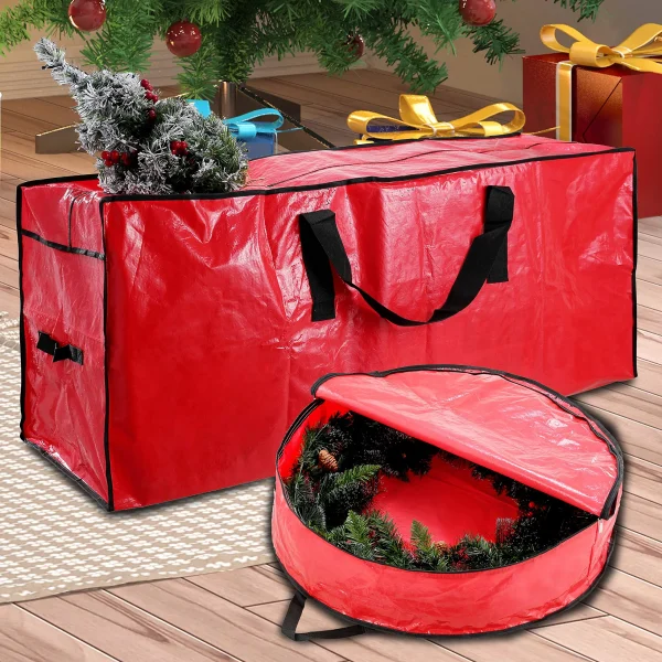 Taking down Christmas decorations can be a hassle, and storing them is even worse. Not anymore! The Christmas Tree and Wreath Storage (Red) is absolutely perfect to store your Christmas tree and wreath. We designed the Christmas Tree and Wreath Storage (Red) to keep your holiday decorations safe until you need them again. While it’s sad that Christmas is over, it’s pretty awesome that there was one more gift for you. Grab your Christmas Tree and Wreath Storage (Red) today and start taking the decorations down.