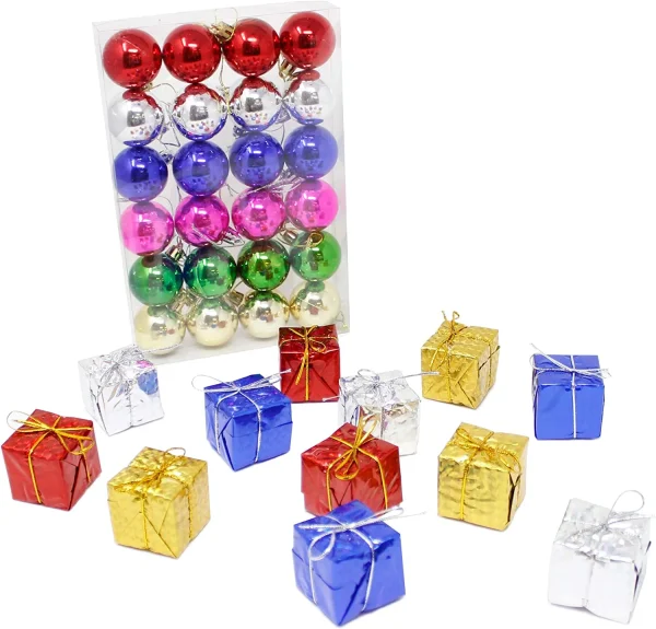 • Our Prelit Artificial Christmas Tree Decorations include Tree Toppers, 4cm Ball Ornaments, and 4 cm Gift Box Ornaments