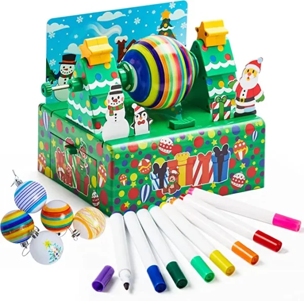 This DIY ornament spinner is perfect for Christmas Craft Activities, party favor, Christmas party games, Christmas gifts, Christmas goodies, Christmas party supplies, Christmas party favors, Christmas classroom activities, and all other uses. Your kids will enjoy using this machine for hours on end as they create their own unique DIY Christmas ornaments. The best part about this machine is that itβs made from high-quality plastic that is designed to last! It can be used over and over again without having to worry about it breaking down. This ornament spinner is also very safe for children to use because it meets US safety standards. Itβs super durable, long-lasting, and superior quality!