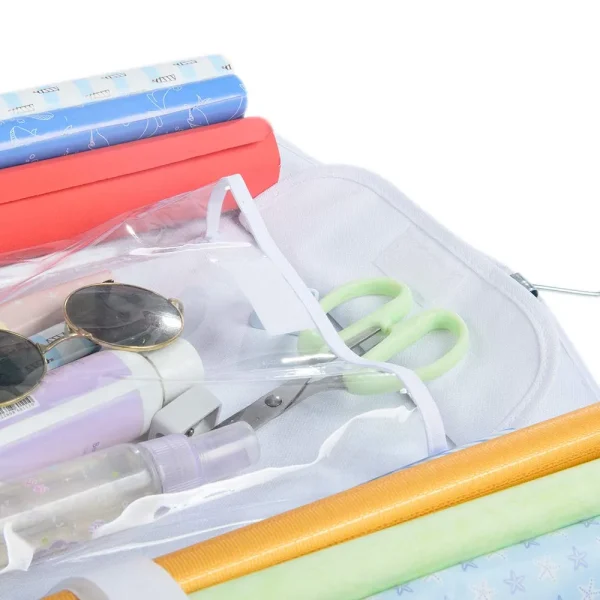 With the double-sided hanging wrapping paper organizer storage, you can organize your gift-wrapping supplies like a pro and de-clutter your cabinets. It is specifically designed to hold all of your gift-wrapping supplies! You no longer need to waste valuable cabinet and drawer space to store and organize your ribbons, bows, wrapping paper rolls, or gift bags! No more jumbled drawers and fuss! You can now make gift wrapping enjoyable and simple again! You no longer have to spend hours looking for that perfect ribbon or Christmas-themed wrapping paper! Because of its thick transparent PVC and spacious design, our hanging wrapping paper storage caddy will help you find anything you need in seconds. Its multiple compartments can easily accommodate up to 12 x 40-inch wrapping paper rolls and any other accessory!