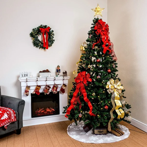 The faux snow tree skirt is the perfect way to finish off your Christmas decorating! This 48-inch-long Christmas jacquard cashmere falling snow tree skirt pattern includes a 1-piece tree skirt. Our tree skirt is artistically created to enhance the holiday decor atmosphere of your Christmas tree. Additionally, the Velcro closures are correctly positioned, and the edges have been neatly stitched to keep the tree skirt in place. Impressively styled to add life and cheer to your Christmas. Just place this mat beneath your tree to finish off your winter holiday decor. Put the rest of your decorations on top of this skirt and don’t worry it will blend in beautifully with them. Constructed from strong, premium fabric materials. This is child safe, non-toxic, and odorless!
