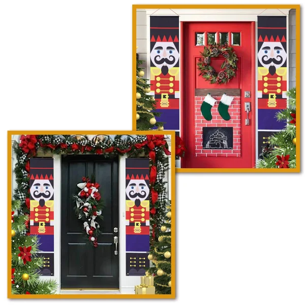 • Joyfy Nutcracker inspired christmas door banner includes 1 banner with 12 x 72 inches vertical door banners size. The banner features two bottom holes that makes it tidier and windproof. This gives a merrier christmas vibes inside and outside the house!