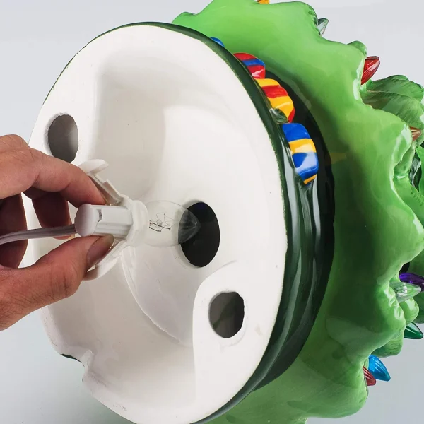 Make your holiday time more enjoyable with this tabletop ceramic Christmas tree. This Christmas tree decoration includes a 56” plastic power cord that allows you to place it almost anywhere in the house. It comes with multicolored bulbs and is presented in a decorative box. You can get this tabletop Christmas tree for your home or office decoration, or give it as a nice present for your friends. The ceramic tabletop Christmas tree decoration with lights is an ideal holiday decoration for homes, offices, and other places for many occasions. It uses C7 bulbs and has a 56″ power cord so there’s no worry about batteries. The gift boxes under the tree are perfect for your own treasured ornaments. Comes complete with one extra Red Star Topper and 10 multicolored bulbs! Any child would be delighted to see their new Christmas tree come to life before their eyes as the multicolored lights enhance any room!