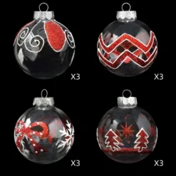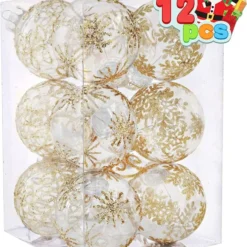 12pcs Gold Print Transparent Christmas Ball Ornaments 3.15in